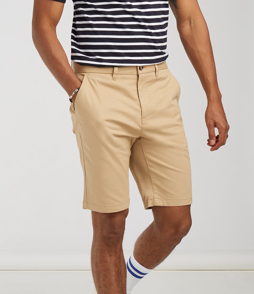 Discover the epitome of style and comfort with our Flat Front Chino Shorts. Designed to elevate your summer wardrobe, these shorts combine a timeless aesthetic with functional features. The stretch twill fabric ensures ease of movement, allowing you to stay comfortable and unrestricted throughout the day.