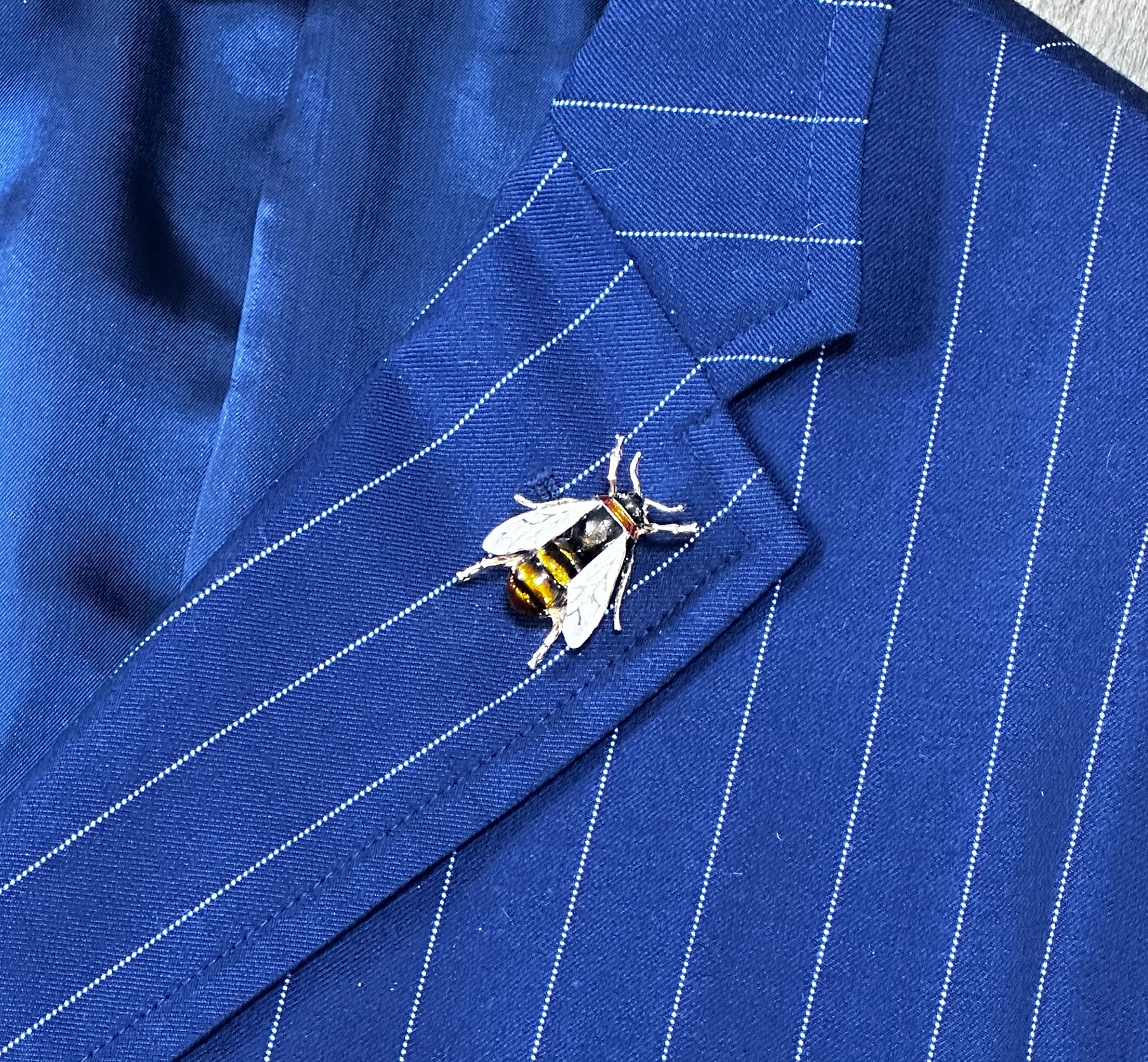 This lovely bee motif lapel badge is a really striking way of adding some flair to your look. Rhodium plated and painted to give a detailed bee look. Measuring 38mm top to bottom it's on the larger side for a motif lapel pin but the detail really is exceptional. Fastened with a brooch fastening for security this really is something special